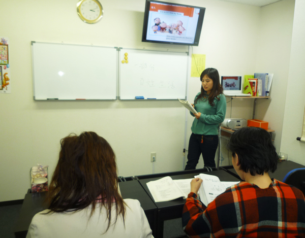 会話練習をはじめ、ヒアリング練習、単語の紹介、文法説明、例文作成、日中対訳、練習問題、模擬試験などを行います。